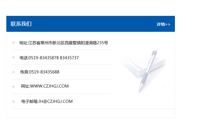傳真:0519-83435688    郵編:213135    網址:WWW.czjhgj_com.shirleycn.com    電子郵箱:JH@czjhgj_com.shirleycn.com